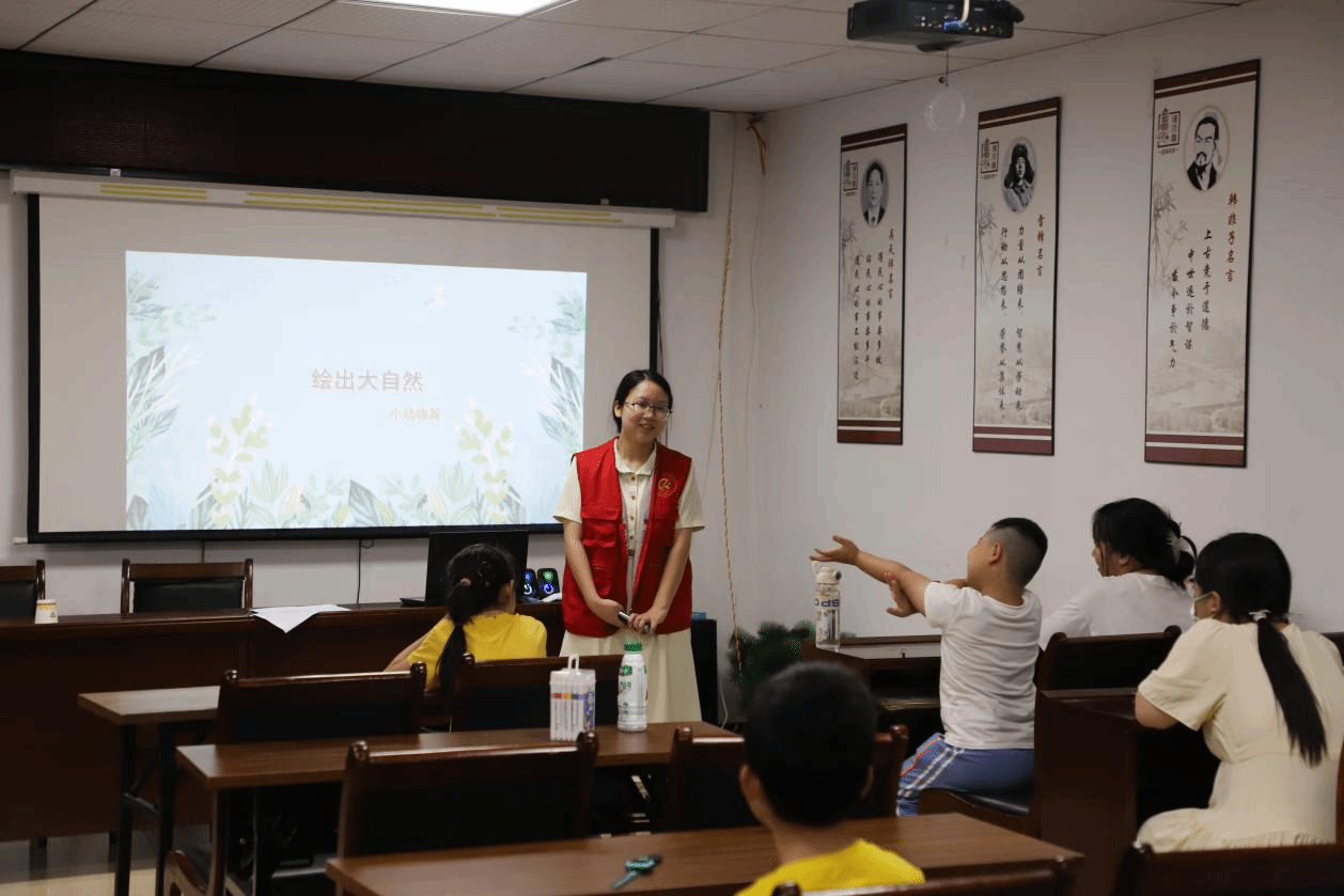 另外,一场别开生面的绘画比赛如火如荼地展开,将活动的氛围推向了沸腾的高潮。“亲爱的小朋友们,请告诉我,你们心中的大自然,是怎样一幅绚丽多彩的画卷呢?”实践团成员的提问,瞬间激发了孩子们无尽的想象力与创造力。他们争先恐后地回答:“有小花小草,在微风中轻轻摇曳!”“有蜿蜒的小河,唱着欢快的歌!”“还有可爱的小动物们,在森林里快乐地奔跑!”