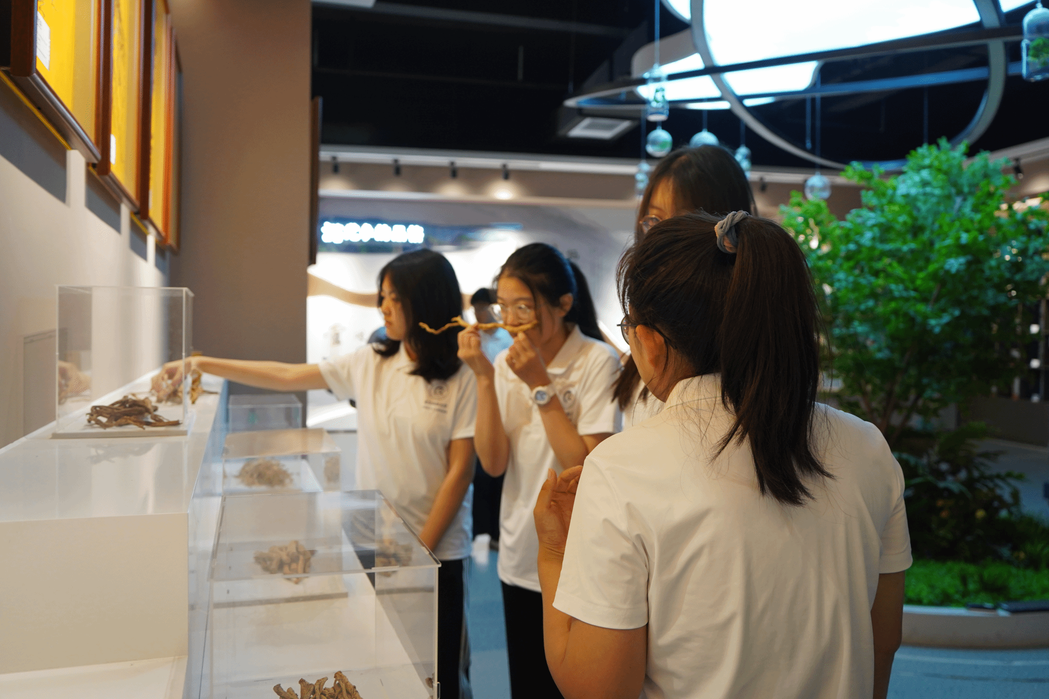 在工作人员的带领下,实践团成员亲手触摸,亲自品尝了几类中药材,苦中有甜,别有一番风味。在品尝过程中,实践团成员不仅体验了中药材的神奇魅力,也感受到了中医药文化的深厚底蕴。同学们纷纷表示,这种文化传承需要我们每个人的努力和传承。