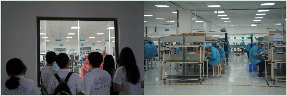 第二站,实践团成员来到了长治市卓怡恒通信息安全有限公司。该公司围绕国产化技术路线平台。在工作人员带领下,实践团成员来到一线车间,近距离观看组装和测试的各区间。从加工线、测试线、组装线和包装线,到老化区特殊作业区域。整个生产过程通过MES智能化技术手段进行监控,实现了智能化生产。实践团见识到从主板装配到主板测试再到主板包装的生产线路,精细的元件在工人们的手中一点点成型,使团队成员对所学的计算机内部结构及制作过程有了更深刻的认识。成员孙艺文在对今天的参观心得中提到:“在这个技术产业园中,每一道工序都需要经过严格的测试;技术人员在组装计算机的过程中需身穿防护服,并且不能携带手机、打火机等物品……每一处细节都让我深刻感受到了企业精湛的技术与对产品质量的严格把控”。