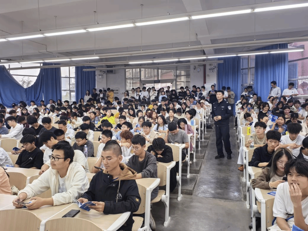 近年来,随着互联网的普及和社会经济的快速发展,诈骗活动日益猖獗,严重威胁着人民群众的财产安全和社会稳定。诈骗分子的手段越来越多样化,从传统的电话诈骗、短信诈骗,到现在的网络诈骗、社交软件诈骗等,让人防不胜防。为提高广大师生的反诈能力,ok138cn太阳集团529于11月4日开展了反诈宣讲会,本次宣讲会由纸坊派出所邓警官主讲,2024级本科生辅导员、全体新生共同参与。