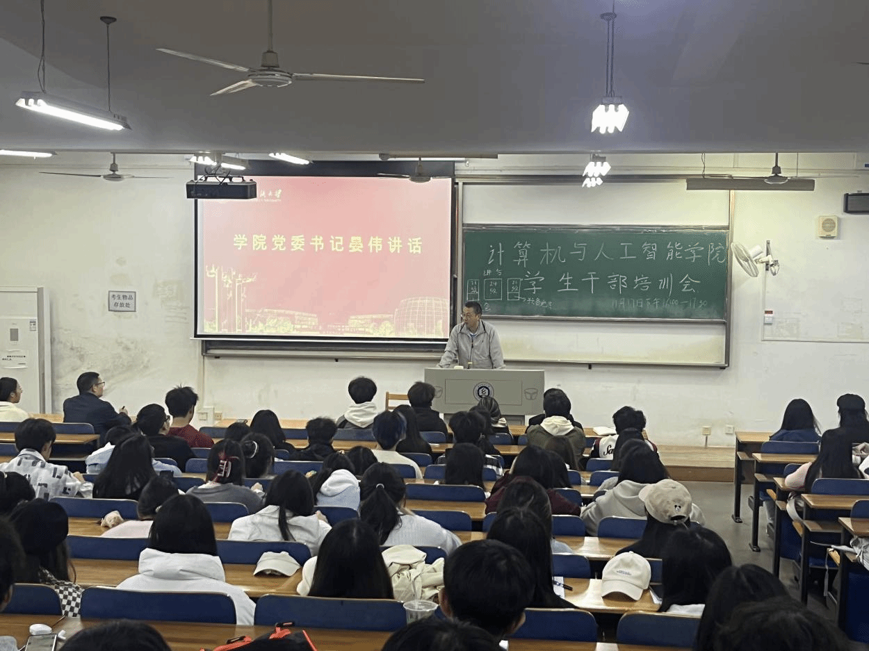 为提升学院学生干部的综合素质,增强学生干部的引领力、组织力、服务力,明确工作职责。学院于11月17日下午在03-117组织了全院学生干部赋能培训大会暨书记讲专题党课活动。学院党委书记晏伟、副书记向涛、辅导员、各年级班级学生干部、学生会主席团及部长、全体预备党员齐聚一堂,共同参与了这场关于学习、管理、生活的思想交流。