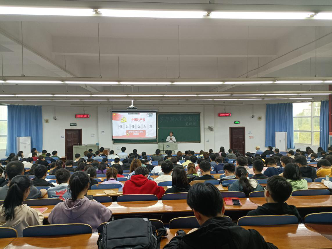 涂耀威从党的历史、政党与道路、理想信仰、入党与没入党的区别及入党流程等方面深刻阐释了为什么入党”这一主题。他从中共一大讲起,回顾了党发展的历史脉络;以“中国共产党为什么能”讲解政党与道路的问题;以余华的《活着》为案例,阐释信仰的力量;以徐卫林校长和廉毅、成振瑞等同学的典型案例,谈了党员的模范作用;对比了同学们入党与没入党的区别;以流程图的形式介绍了入党流程,进一步增强了同学们对党的认识、端正了学生的入党动机。讲授中,视频、故事、图片,展现形式多样,引起在场同学共鸣。