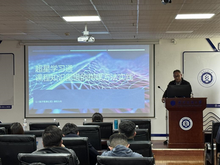 在专题报告环节,学院姚迅老师以《课程知识图谱构建方法实践》为题,现场演示了基于大模型的教材智能处理过程,分享了如何使用大模型进行知识图谱的快速构建,包括大模型的选择、教学资源的处理方法、知识图谱构建过程中存在的问题等。许小静老师则通过《AI+通识课教学实践》的案例展示,详细介绍了在教学过程中,如何通过设计合理的教学案例,引导学生使用大模型,系统介绍了AI提示词工程在教学案例设计、代码分析等环节的创新应用。