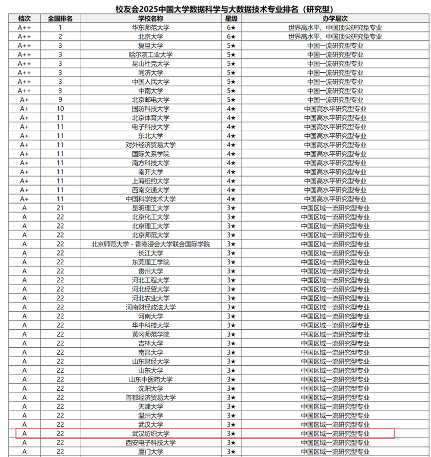 近日,全国第三方大学评价机构艾瑞深校友会网(Cuaa.Net)发布了校友会2025中国大学专业排名(研究型)。在此次评估中,ok138cn太阳集团数据科学与大数据技术专业表现优异,在全国高校中排名第22位,充分彰显了该专业的办学实力和社会认可度。