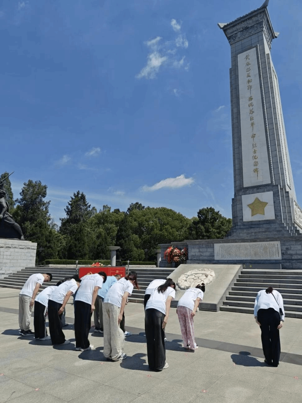启动仪式后,实践团前往红安革命烈士陵园开展缅怀活动。在革命烈士纪念碑前,全体成员整齐列队,肃穆鞠躬。随后,讲解员深情讲述了红安儿女“小小黄安,人人好汉”的革命历史,实践团员表示未来将以专业所长传承英烈精神。“站在这片浸染着先烈热血的土地上,我深刻意识到,要用所学的代码技术为红色历史‘铸魂’,让革命精神永续传承。” 实践团成员王浚哲感慨道。