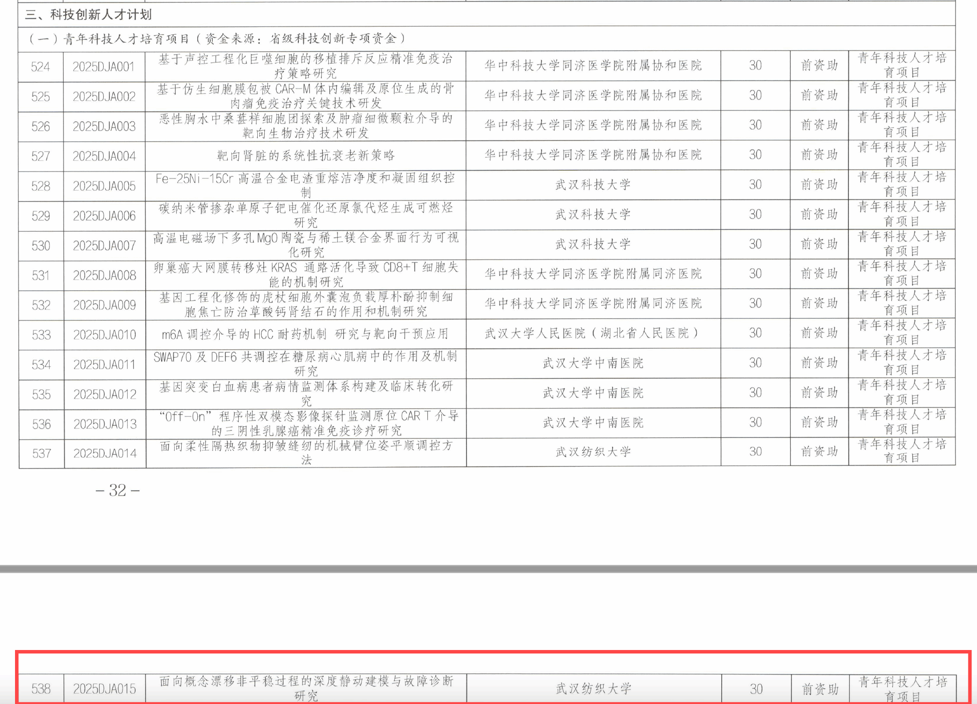 近日,2025 年度省级科技计划项目立项名单揭晓,我院王兆静老师主持的项目成功入选青年科技人才培育项目。这是王兆静老师继主持国家自然科学基金、湖北省自然科学基金等省部级以上科研项目后,在科研领域获得的又一重要认可,不仅彰显了其个人的科研创新能力,也体现了我院在青年科技人才培养及智能制造领域科研实力的稳步提升。