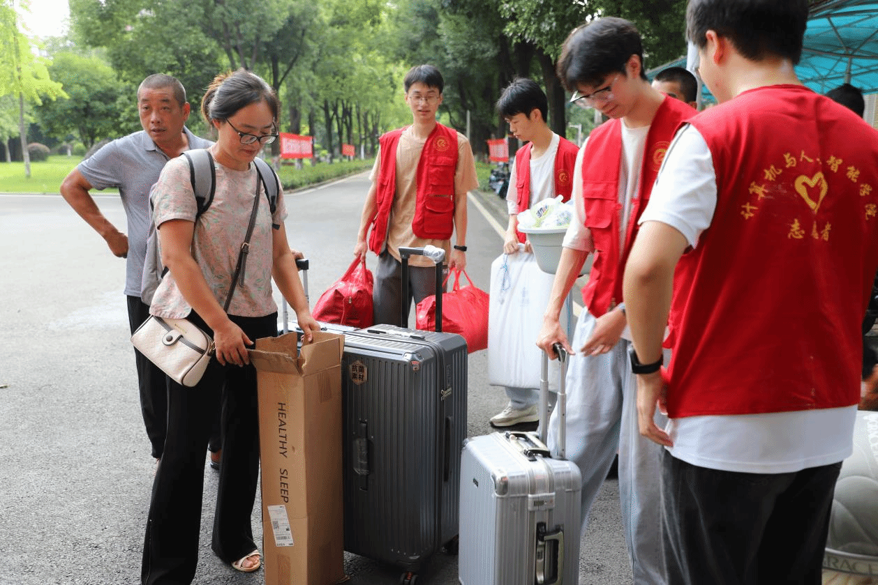迎新现场,学院组建的志愿者团队全程护航。志愿者们提前接受培训,明确分工,从校门口引导、行李搬运,到报到流程讲解、校园路线指引,始终以热情的态度、耐心的服务,帮助新生快速完成注册、物资领取等手续,用行动传递校园温暖,为新生带来一堂生动的“思政课”。
