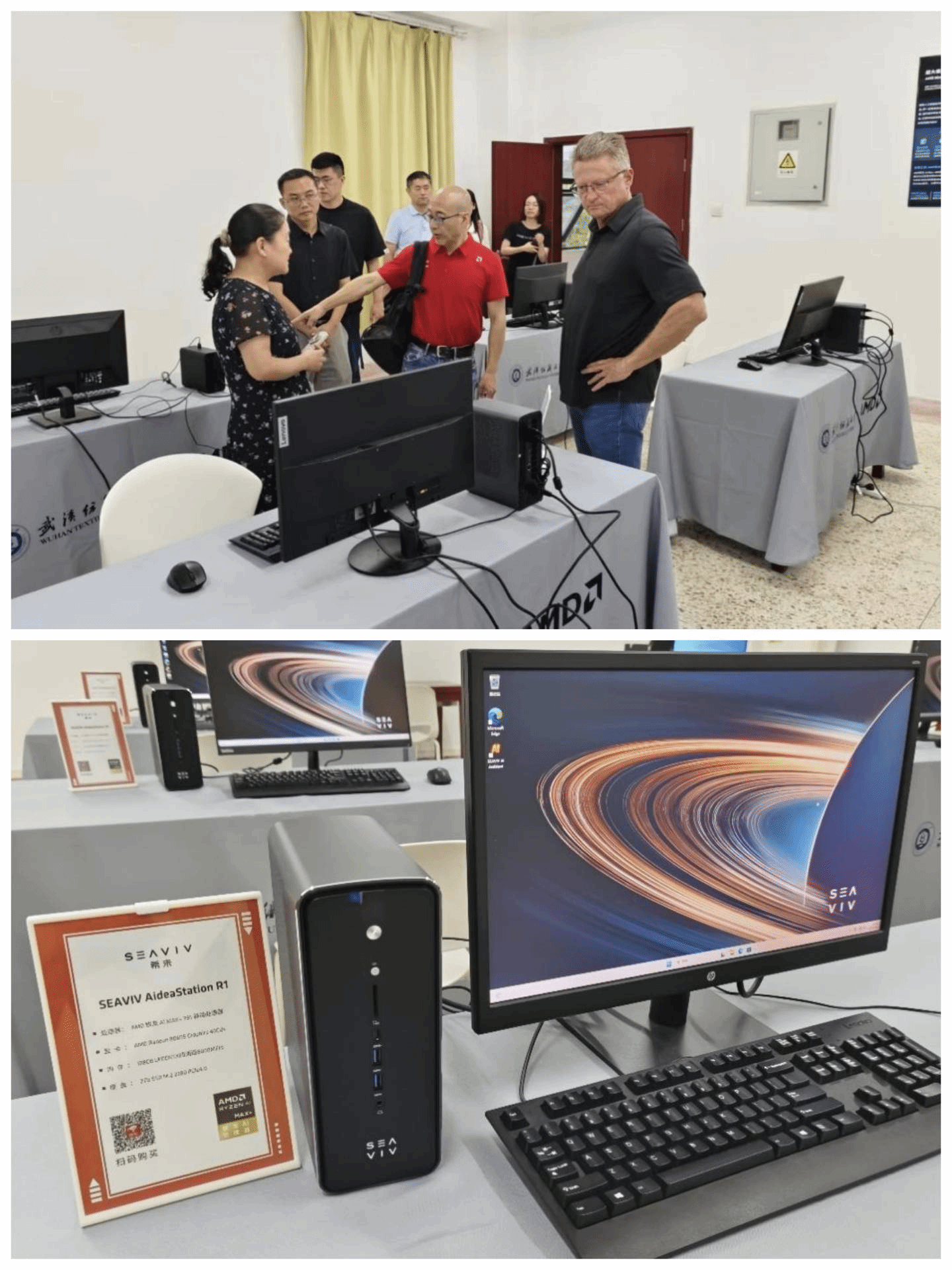 此次中心引入了多台采用AMD锐龙AI Max+395处理器的迷你AI工作站,包括HP Z2 Mini G1a和SEAVIV AideaStation R1,将为学院的AI教学与科研工作带来质的提升。锐龙AI Max+395具备强大的AI算力和AI工作站级别的性能,集成了多达16个 “Zen 5” 架构的CPU核心,多达40个单元的AMD RDNA3.5图形核心,以及一个高达50TOPS AI算力的NPU ,能够轻松应对复杂的AI加速工作负载。同时,它还支持高达128GB统一内存,动态分配至高96GB显存,本地部署超大模型不再为显存焦虑,尤其适配主流MoE架构大模型,Qwen3-235B端侧推理速度达14 tokens/sec,GPT-OSS-120B端侧推理速度达40 tokens/sec,同时兼容超长上下文,为端侧AI应用创新提供算力基础。空间友好,数据安全,成本更优,是端侧和边缘AI推理的新一代平台。
