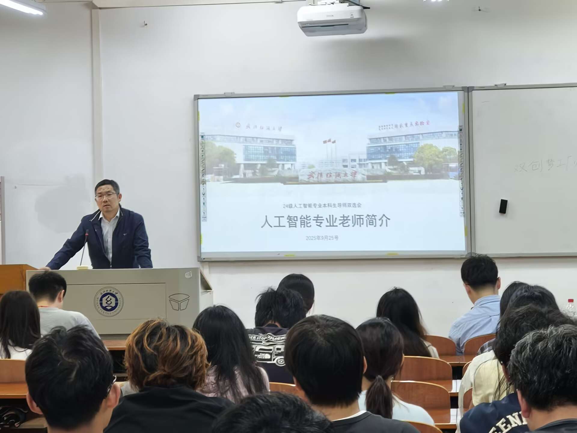 会议开始,朱强老师并简要介绍了人工智能专业的发展历程、学科优势、课程体系及就业深造情况。他鼓励同学们珍惜导师资源,积极参与科研训练与学科竞赛,在大学阶段打下坚实的专业基础。