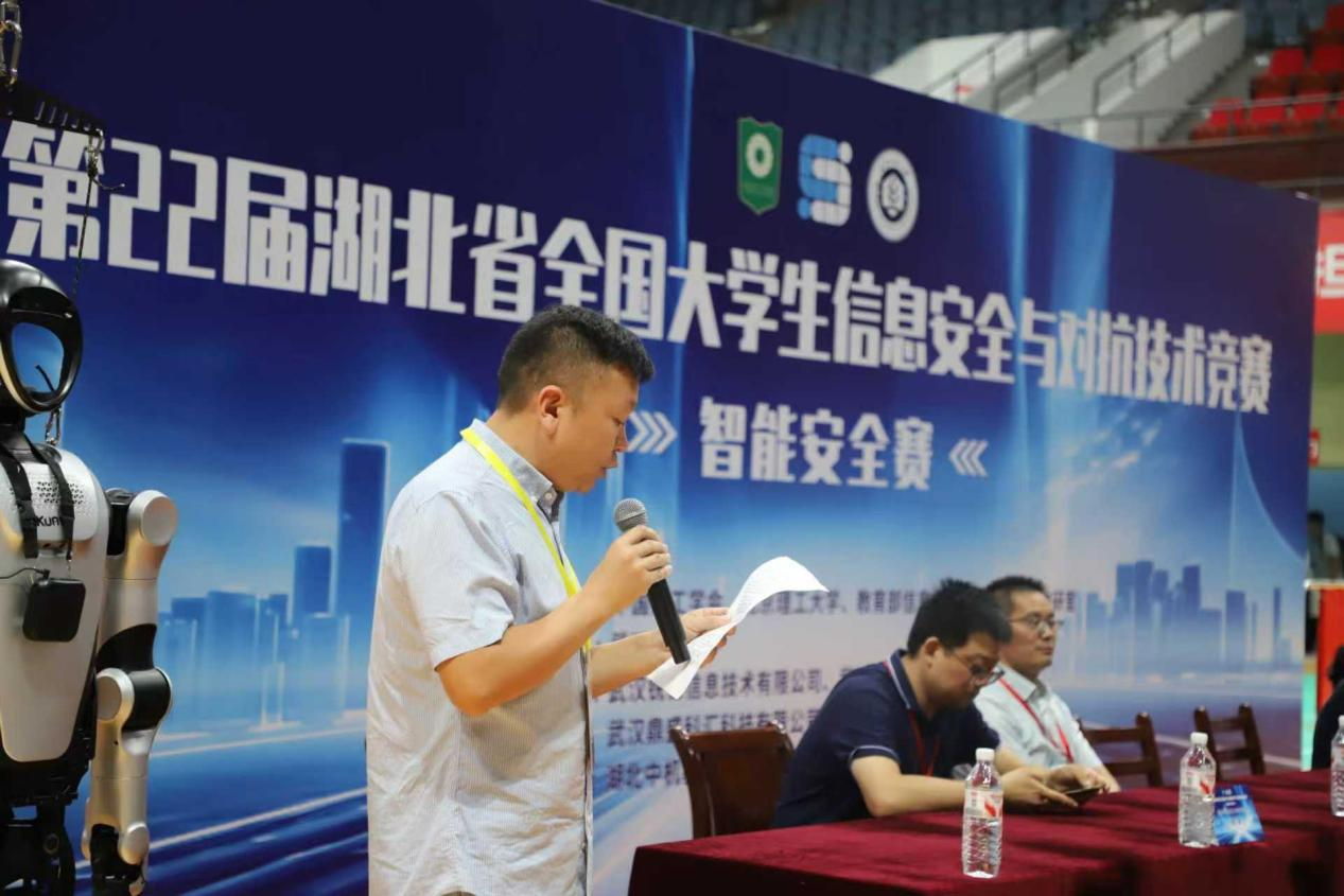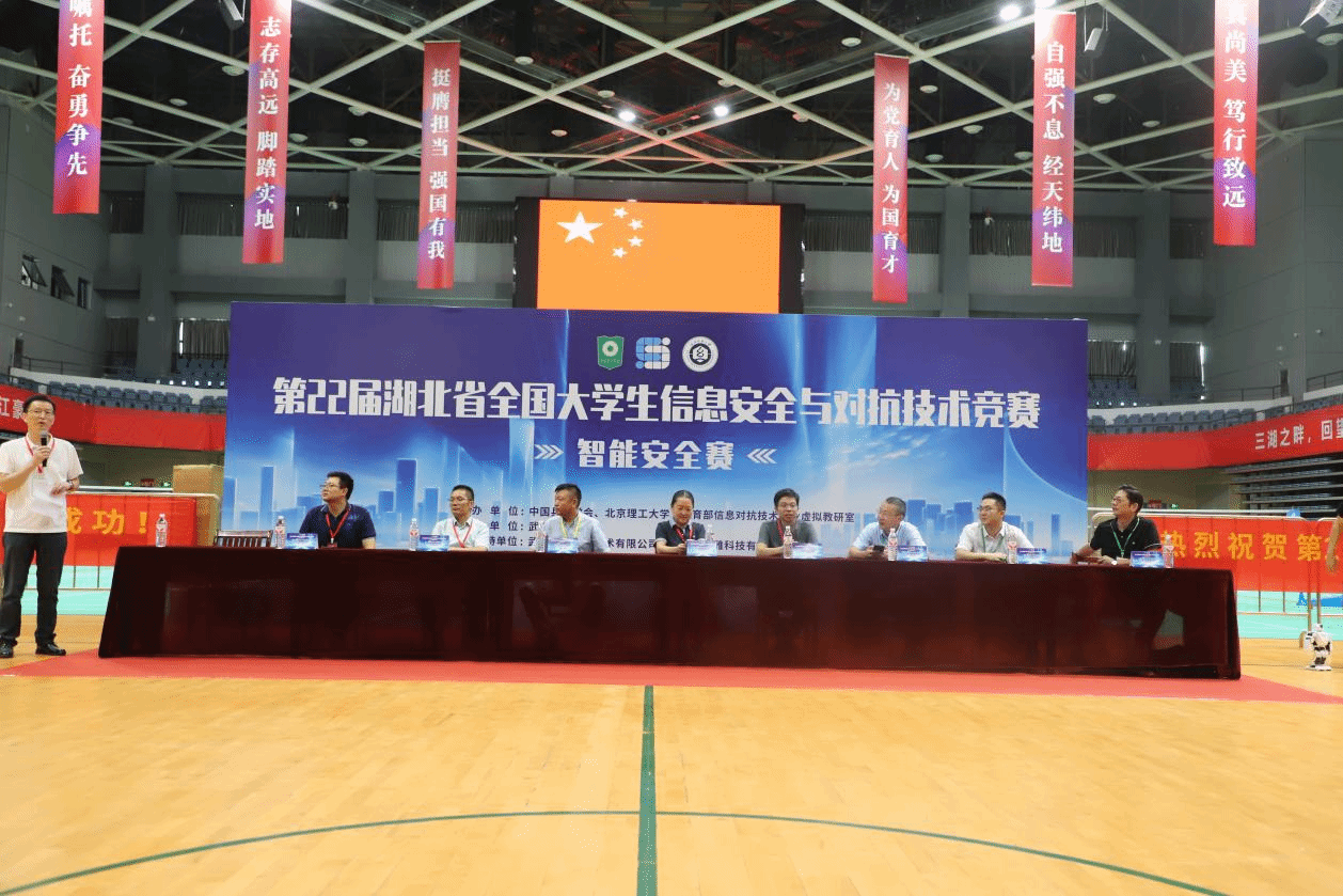 10月12日,第22届湖北省全国大学生信息安全与对抗技术竞赛暨智能安全赛在ok138cn太阳集团体育馆隆重开幕。来自华中科技大学、武汉理工大学、中国地质大学等省内27所高校的100余支队伍参加比赛。本次赛事由中国兵工学会、北京理工大学、教育部信息对抗技术专业虚拟教研室联合主办,ok138cn太阳集团承办,武汉锐德信息技术有限公司、武汉鑫卓雅科技有限公司、武汉鼎盛融汇科技有限公司提供技术支持,湖北中机教育科技有限公司、吉林省奥奕信科技有限公司担任服务单位。大赛组委会秘书长、吉林大学康冰教授,湖北省机电工程学会湖北省机电工程学会副秘书长王裕超,ok138cn太阳集团本科院副院长李明,ok138cn太阳集团529(网络空间安全学院)学院院长胡新荣、院党委书记晏伟、副院长彭涛,以及企业代表、学生代表共同出席开幕仪式。开幕由彭涛主持。