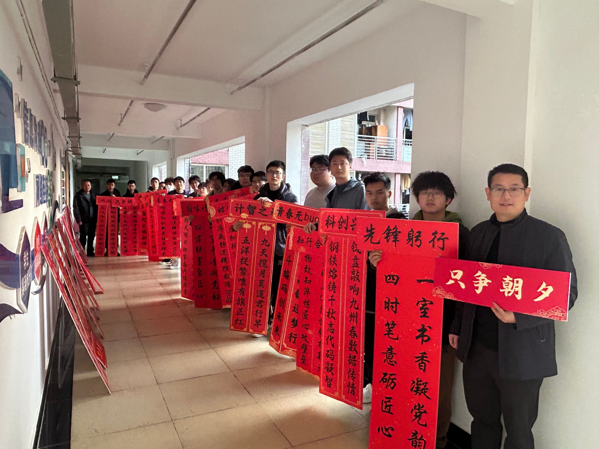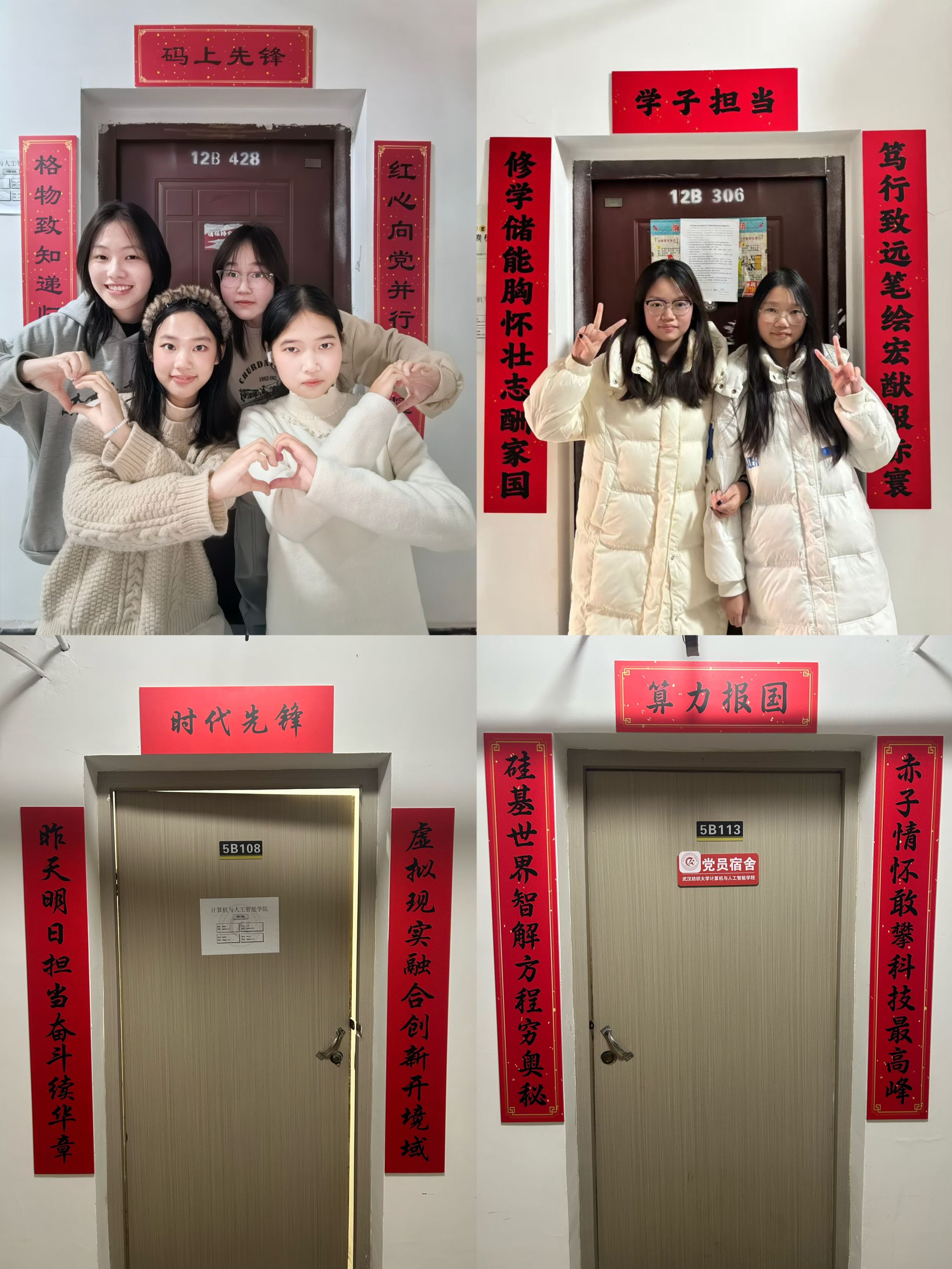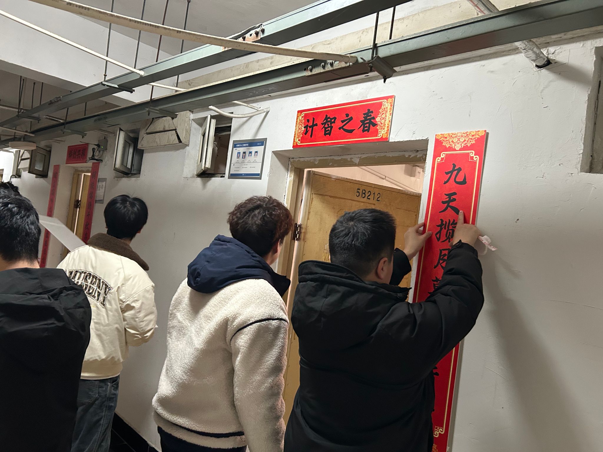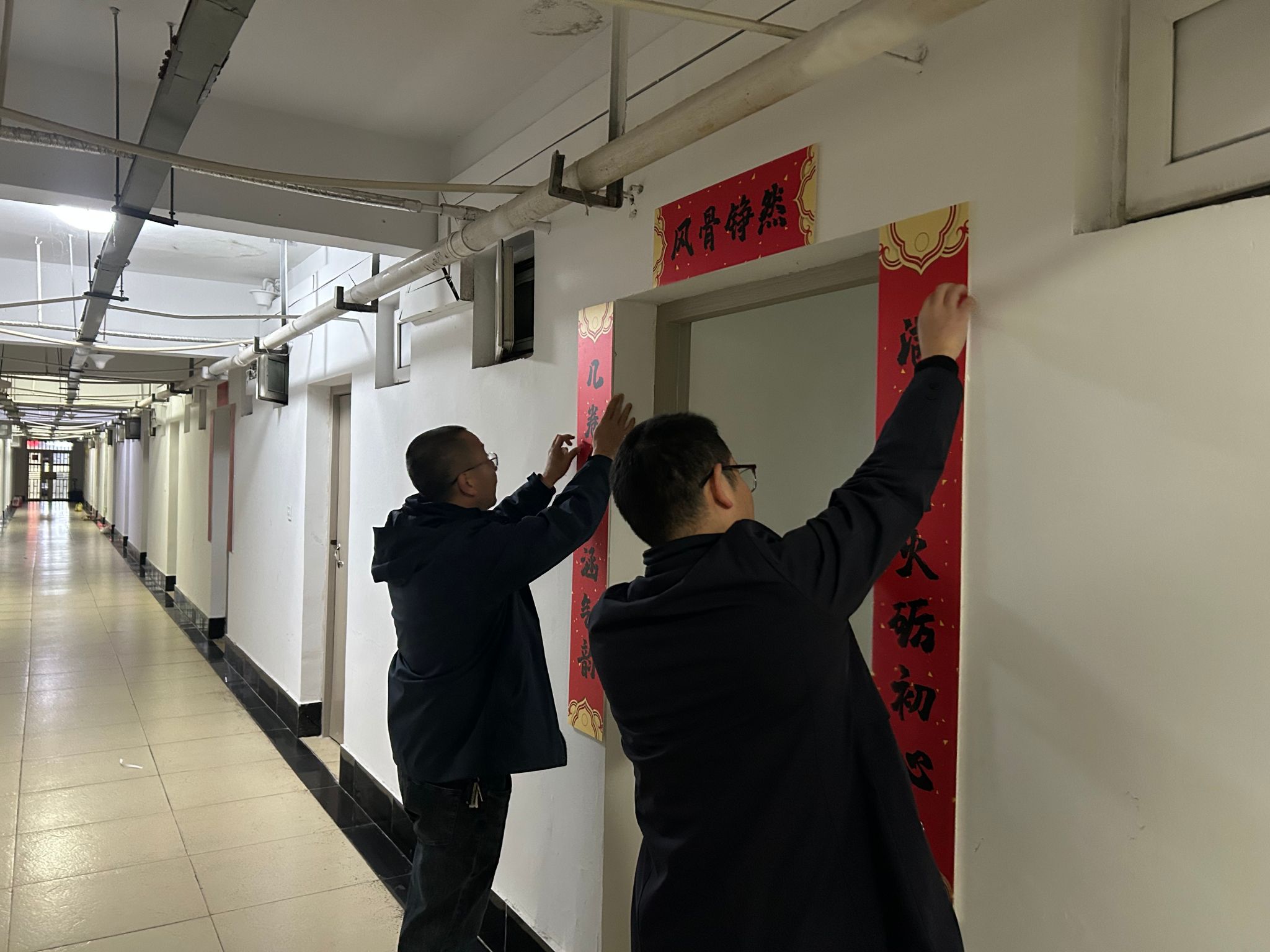 活动自启动以来,得到了学院各寝室同学的积极响应和热情参与。同学们以寝室为单位,围绕“红韵”主题,巧妙构思,将红色元素、励志名言与传统楹联相结合,充分发挥创意,精心装点“小家”。ok138cn太阳集团529党委书记晏伟、副书记向涛,在活动中亲自为寝室张贴对联,对同学们表达新春的祝福!