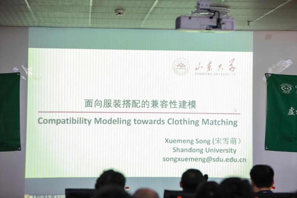山东大学宋雪萌副教授进行了主题为“Compatibility Modeling towards Clothing Matching”的报告。报告中指出,智能时尚领域的一个重要应用就是互补服装的智能化推荐,即为用户推荐与他/她已购买服装相匹配的互补服装。比如,根据用户已经购买的上衣,为其推荐相应的下衣、鞋子和配饰等。因此,作为互补服装推荐的核心技术,套装兼容性建模,即为套装的兼容性(搭配程度)进行自动评估,逐渐引发了学术界与工业界广泛的关注。本次报告主要介绍了其课题组在面向互补服装推荐的兼容性建模的系列研究,主要包括基数据驱动的兼容性建模,知识引导的兼容性建模,个性化的兼容性建模,以及基于生成辅助的兼容性建模。