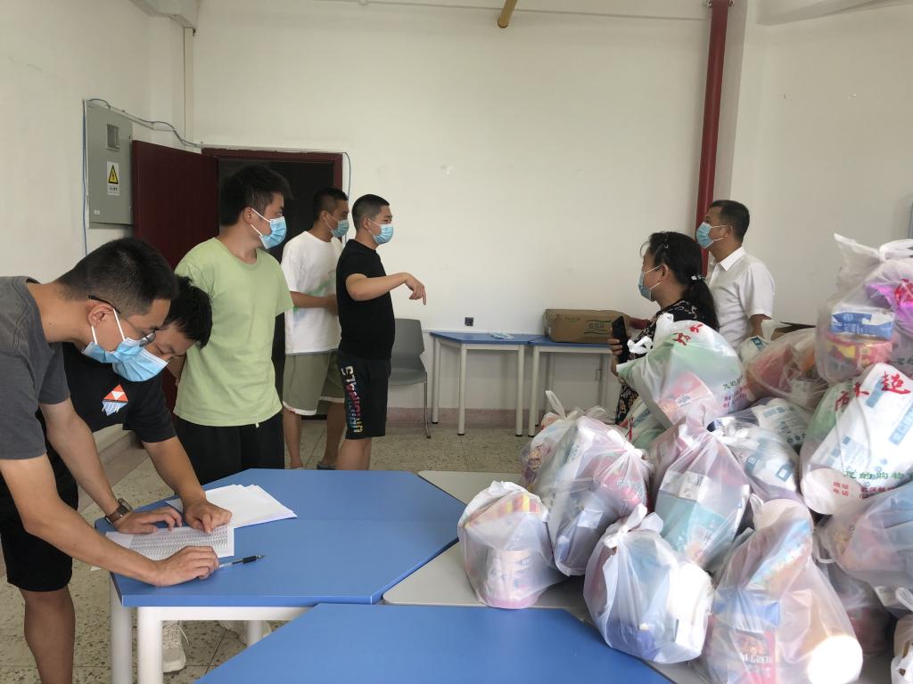 通知发出后,学院立即落实通知要求,学院领导胡红辉、胡新荣立刻部署相关工作。8月7日晚,学院基于留校学生人数和学生具体生活情况的综合考虑,在学院班子成员的共同努力下,为学院340名留校本科生、研究生送去慰问物资。由留校辅导员廖龙做好物资转接工作,经过分装后将陆续发放到留校学生们的手中。