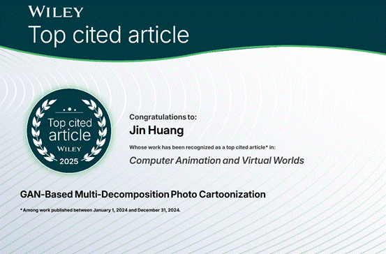 根据Web of Science核心合集最新数据,我院黄晋老师联合我校特聘上海交通大学盛斌教授共同指导的研究生赵文清发表的论文《GAN-Based Multi-Attention Mechanism for Photo Cartoonization》在图像卡通化领域取得重要突破,荣获Wiley 2024年度高被引论文奖(Top Cited Article)。论文提出的AMCycleGAN方法通过融合注意力机制与生成对抗网络,为智能图像风格迁移、数字内容创作等场景提供了高质量的技术解决方案,体现了学院在计算机视觉与人工智能交叉领域的研究实力与学术影响力。