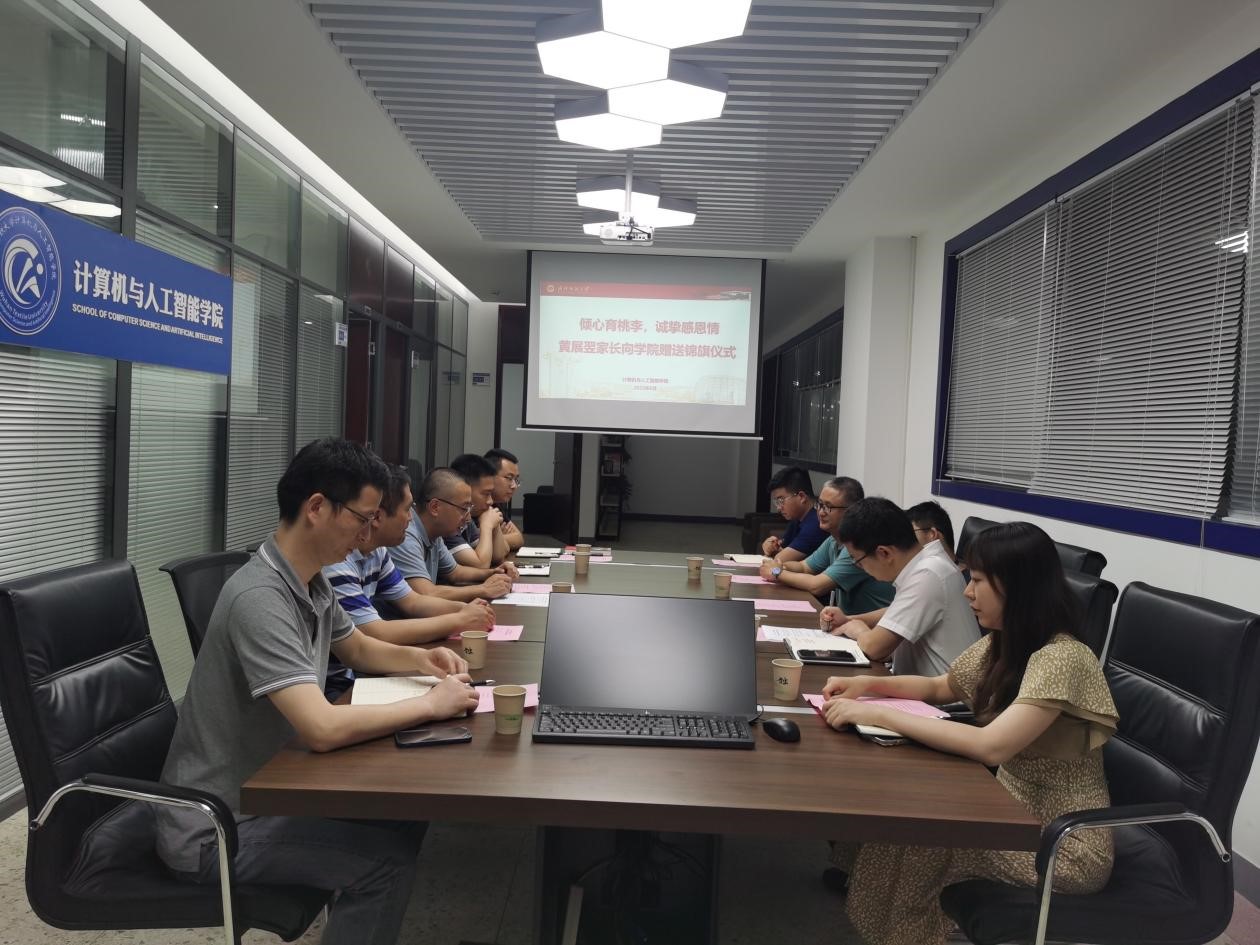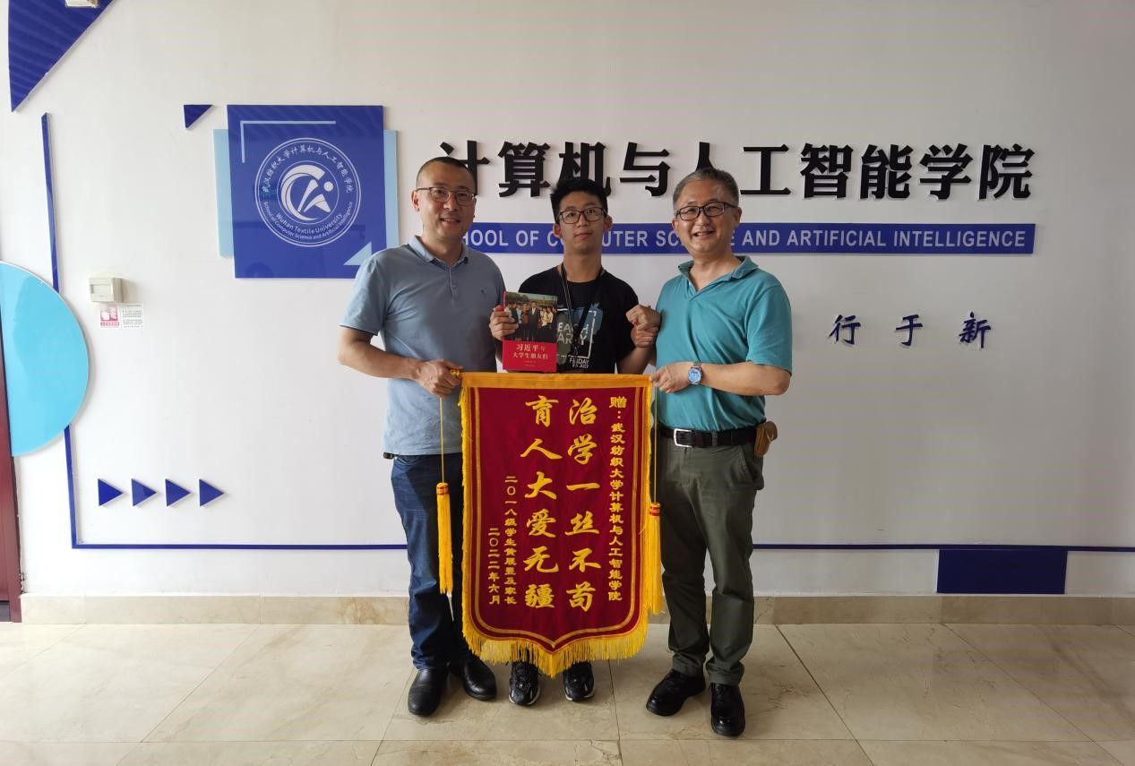 6月1日上午,在崇真楼(南楼)A4008会议室,ok138cn太阳集团5292022届软件工程专业毕业生黄展翌和他的父亲向学院赠送了写有“治学一丝不苟,育人大爱无疆”的锦旗,以此感谢学校、学院和师生们四年来对黄展翌的照顾与帮助。学工部副部长夏贤辉、校团委副书记侯庆,学院党委书记晏伟,副院长魏雄、彭涛,2018级辅导员廖龙、蔡文婷等参加赠送仪式。会议由学院党委副书记向涛主持。