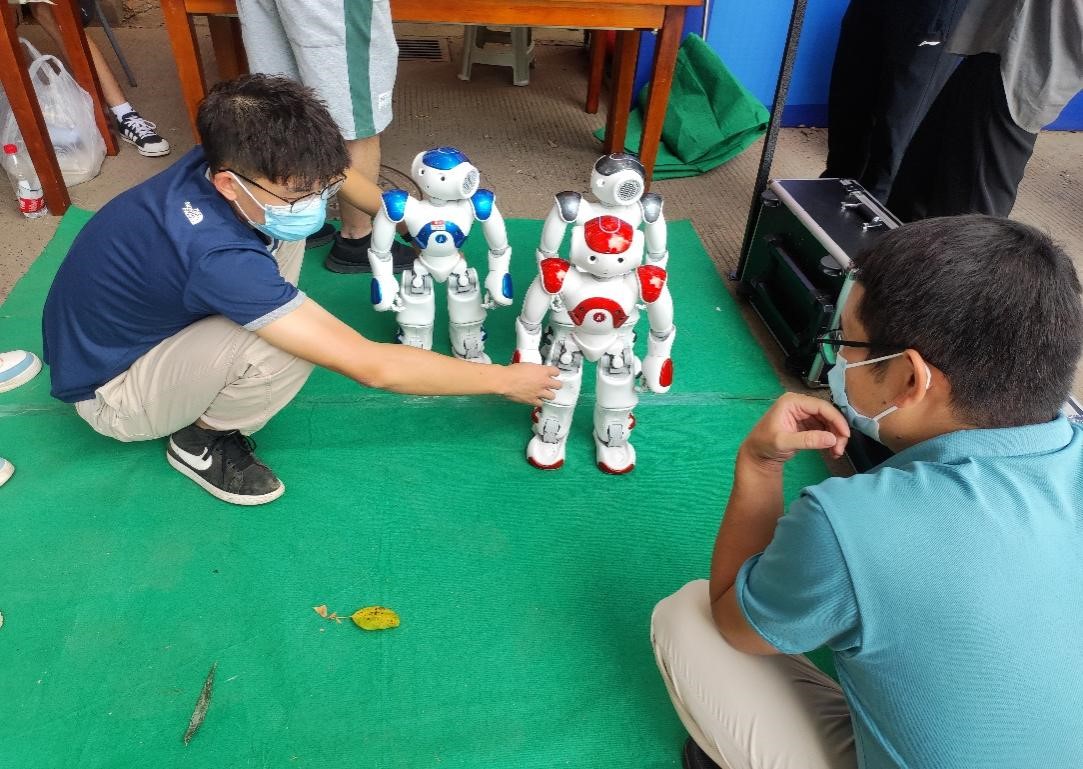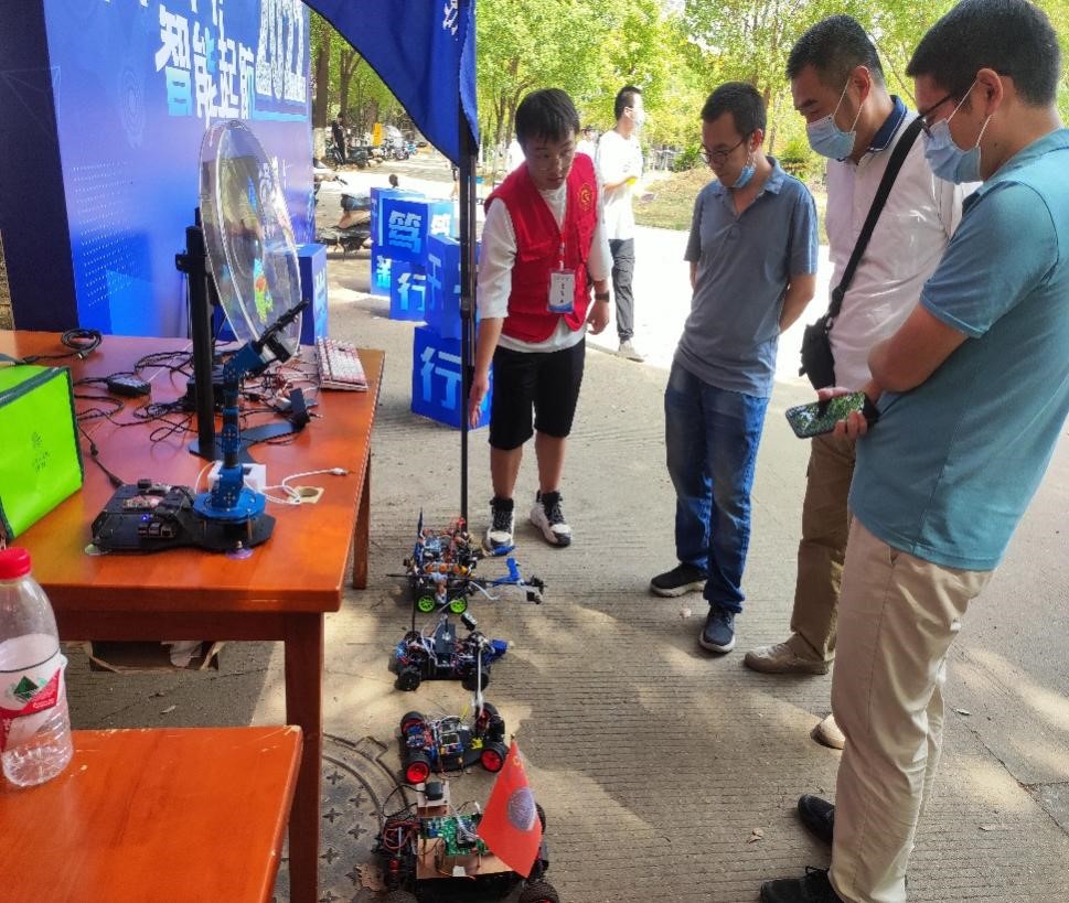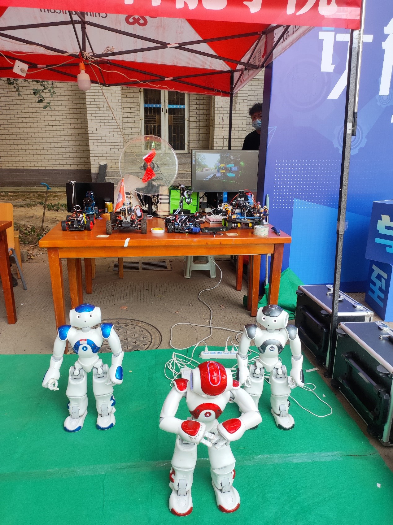 5栋宿舍楼下迎新报到现场,展示了学院1024工作室成员参加比赛的格斗机器人,伴随着音乐的节奏,这些机器人附和着音乐跳起了广场舞。还有研究生学生自己调参的裸眼3D风屏,在不需要任何辅助设备的情况下,即可获得具有空间、深度的逼真立体形象,充分展示了计算机的专业魅力。