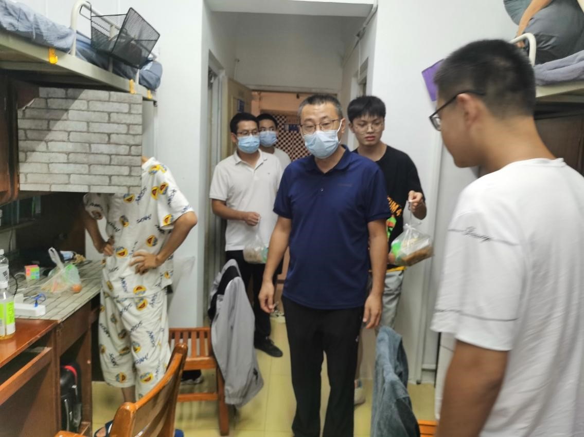 新生报到时,正值中秋佳节。学院为每位新生准备了月饼,在新生报后为每位同学送上了节日的祝福,胡新荣院长、向涛副书记和新生辅导员廖龙深入宿舍,亲切慰问了新生代表宿舍。在新生返校后的静态管理中,晏伟书记等一行人也亲自为新生宿舍送餐,与新生们谈心谈话,鼓励他们在新的起点上不负韶华、顽强拼搏。
