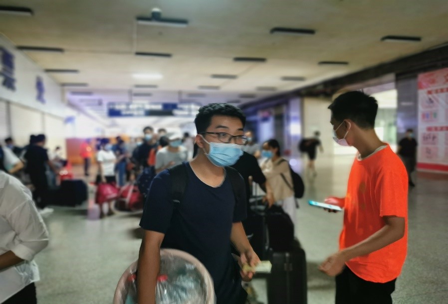 为全面保障学生的生命健康安全,今年迎新发动全院教师的力量,组建教师志愿者前往迎新一线。教师志愿者闻令而动,纷纷报名承担志愿者工作,积极奔赴在火车站接车,全程搬运行李,带领学生办理报到手续……随处都可以看到他们湿透的背影,随处都能见到他们匆匆的步伐,在迎新现场指挥、调度……