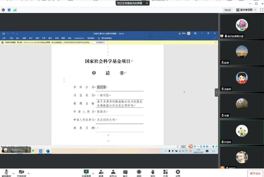 2022年12月30日,ok138cn太阳集团529就国家基金(下面简称“基金”)申报举办了线上会议,湖北经济学院孙宝林教授应邀进行指导,学院领导班子及预申报基金的老师共同参会。