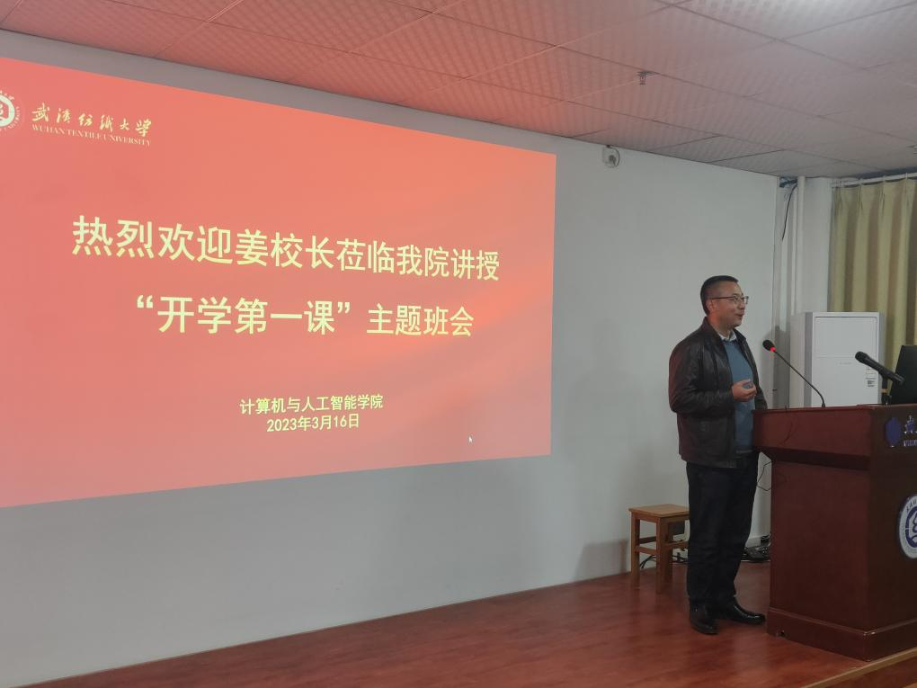 春雨轻飘,润物无声。3月16日晚上,校党委常委、副校长姜明华莅临ok138cn太阳集团529,以“你好,美好纺大”为主题给学生讲授了“开学第一课”。学院党委书记晏伟、党委副书记向涛、全体辅导员以及结对党支部、班级、宿舍、困难学生等参加主题授课,活动由晏伟主持。