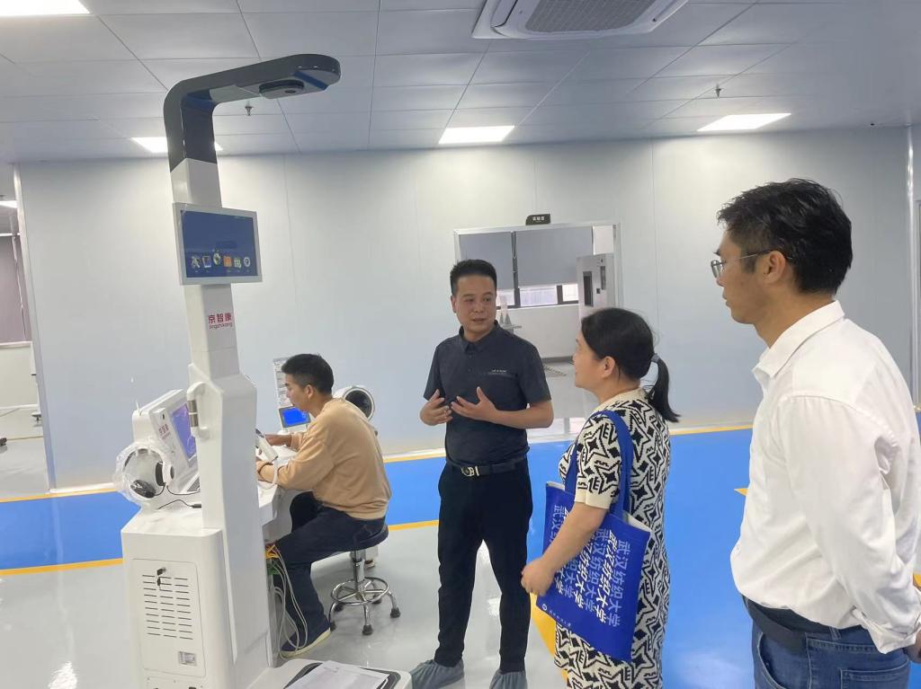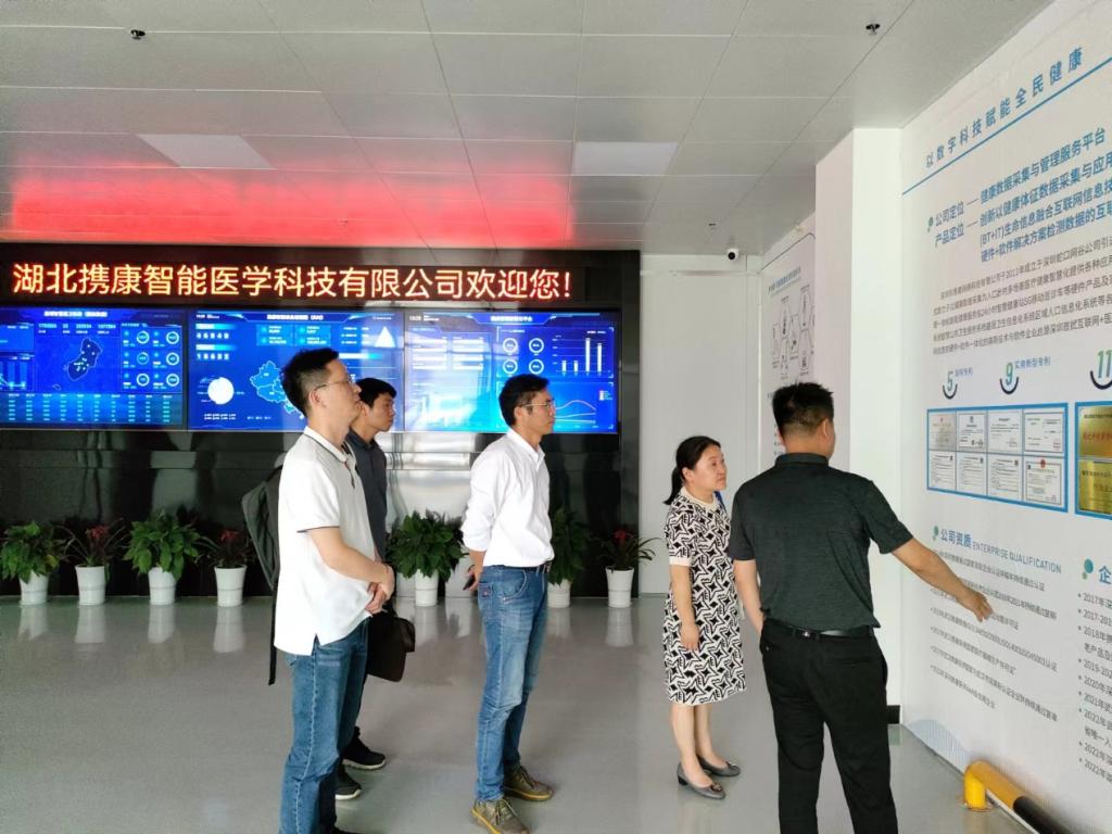 阳新县政协常委、县科技局高新产业负责人杨守盛、湖北携康智能医学科技有限公司总经理柯尊国、副总经理柯于峰对胡新荣院长一行表示热烈欢迎,并陪同参观了公司生产车间与研发部门。双方围绕人体健康模型、生理监测、健康大数据等技术问题进行了深入的探讨,并就技术合作领域、合作方式、学生实习、就业等方面初步达成了合作意向,拟定了下一步的工作计划。