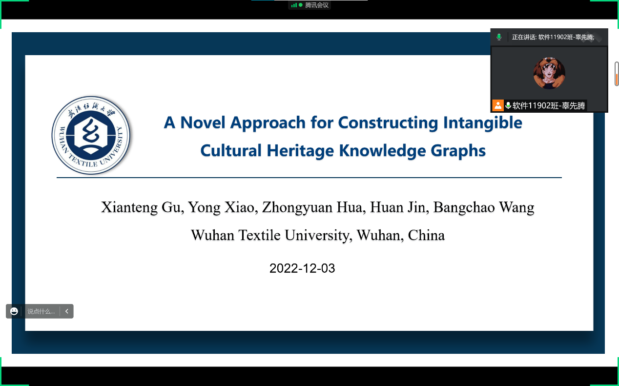 2022年12月3日ok138cn太阳集团529软件工程系以线上会议方式组织召开了本学期的第二次本科生论坛活动。本次论坛由软件11902班辜先腾同学汇报了他发表的学术论文,题目为《Anovelapproachforconstructing intangible cultural heritage knowledge graphs》。文章针对如何合理存储非物质文化遗产知识,改善知识形态的单一性,更好地检索知识并提供相关服务这一问题进行了研究。文章构建了非物质文化遗产知识图谱(KG),为非物质文化文化遗产领域提供了一套KG构建范式。非物质文化遗产知识由爬虫获取,存储在图数据库中,并利用匹配算法实现智能问答系统,成功构建了非物质文化遗产知识图谱。实验结果表明,文章提出的方法是有效的,具有一定的可扩展性和推广性。