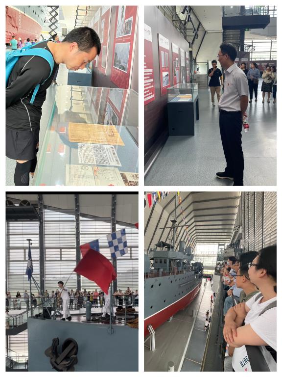 7月 7 日,“七七事变”86 周年之际,ok138cn太阳集团529教工党支部、研究生支部学生党员代表赴中山舰博物馆开展了“不忘初心,砥砺前行”红色教育主题党日活动。此次活动的主题是学院学习贯彻习近平新时代中国特色社会主义思想主题教育的具体安排之一,旨在通过参观学习,深刻体会伟大祖国从积贫积弱向繁荣富强的巨大历史变革,进一步深刻领悟“中国共产党为什么能,中国特色社会主义为什么好,归根到底是马克思主义行,是中国化时代化的马克思主义行”,坚定全体党员聚焦民族复兴大任培育时代新人的决心。