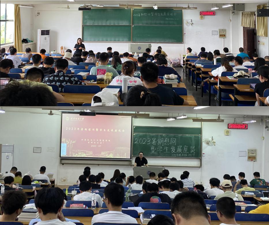 胡新荣、晏伟首先关心留校学生近期生活状况,了解学生考研复习进度、科研竞赛情况,并为学生做考研专题指导,强调暑期是提高考研成绩的宝贵时期,在此期间考验的就是大家的意志,能坚持下来的同学必定能取得优秀的成绩。随后为大家讲解了7月、8月、9月的学习重点及学习技巧,为同学们即将到来的考研冲刺期提供建议。最后,领导、老师为大家送上慰问品。
