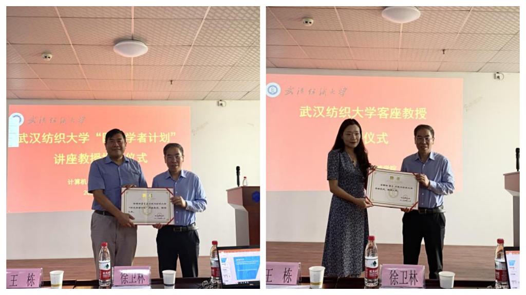 徐卫林在会上充分肯定了计算机学院在人才培养、科学研究、社会服务等方面的工作,表示计算机学院班子团结、师生向上,发展势头良好、发展潜力巨大。他指出计算机作为基础性学科,要想做大做强,必须立足学校特色,服务产业、行业,进行校企合作、产教融合。他强调学校坚持营造“开放、包容、合作”的学术和科研环境,全体师生要以授聘仪式、阳光论坛为契机,加强与两位教授的学术合作与交流,在高水平成果和国际合作等方面取得新突破。