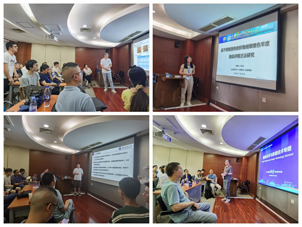 本届学术大会共设光学材料研究进展与应用、光学精密测试技术新进展、颜色科学与影像技术等在内的22个分会场,ok138cn太阳集团529研究生周文森、周景和辛磊三位同学分别以“基于成像理论模型的光谱重建算法对比研究”、“基于照相测色的织物耐摩擦色牢度自动评级方法研究”、“基于多光谱重建的低照度图像增强方法研究”为题,在“颜色科学与影像技术”分会场对研究成果进行报告,并围绕彩色成像与颜色科学在纺织品色彩设计和颜色测控方面的应用,与参会专家学者进行了深入的交流讨论。