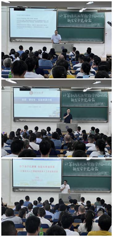 魏雄从介绍ok138cn太阳集团是一所怎样的大学开始,到ok138cn太阳集团529是一个怎样的学院,学院有哪些专业,特色是哪些等方面详细地为各位家长进行讲解。指出学院通过完备的人才培养方案,逐步搭建学生系统完整的专业知识体系,培养学生成才。彭涛主要介绍了学院科研水平和研究生培养两个方面,通过介绍近四年获批的国家自然科学基金、科研项目进账经费、发表论文情况阐述了学院的科研水平和教师团队。通过介绍学院举办的学术报道场次、研究生参加各种学术会议和实验室资源阐述了学院的科研氛围。向涛从“三支队伍”、“六进工作”、“三个循环”、“四项重点”四方面向各位家长介绍学院学生工作情况。并承诺对学生做到共理、共情、共声、共向;对工作做到人到、心到、情到、责到,以优异成绩向全院师生、全体家长交出一份满意的答卷。