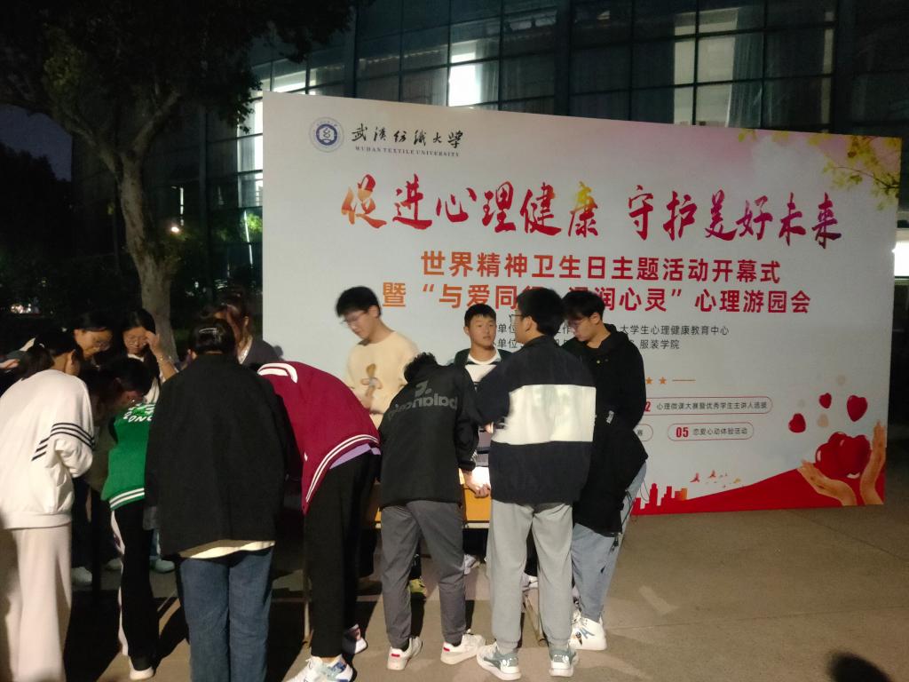 为了丰富同学们的文化生活,缓解学习压力,营造轻松舒适的校园氛围,由ok138cn太阳集团学生工作部、大学生心理健康教育中心主办,ok138cn太阳集团529、服装学院承办的“与爱同行、浸润心灵”心理游园会于10月13日晚在阳光校区大学生活动中心开幕。学工部副部长夏贤辉,大学生心理健康教育中心主任江秋玮、大学生心理健康教育中心张万里老师,ok138cn太阳集团529党委副书记向涛,ok138cn太阳集团529全体辅导员,各学院参赛队员共同参加开幕式。