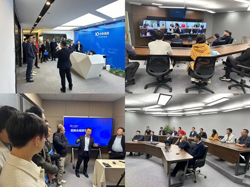 交流结束后,与会嘉宾一同乘车前往光谷APP广场参观在汉校友企业小鱼易连信息科技有限公司。小鱼易连信息科技有限公司副总裁张成华热情接待,详细介绍了小鱼易连是一家采用云计算实现多方视频会议以及视频业务应用的云视频生态系统公司。