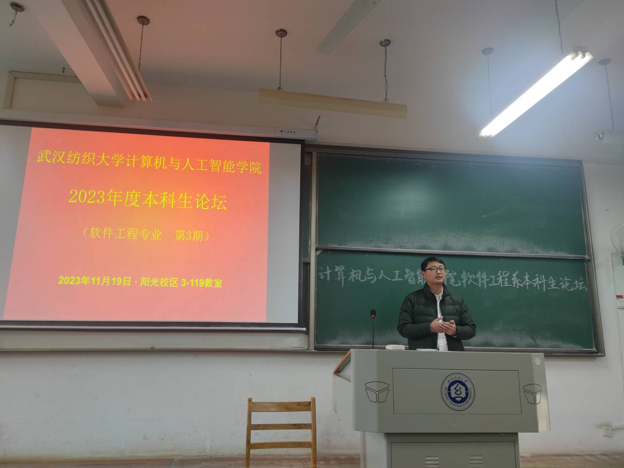 11月19日晚17:00至18:30,在阳光校区3号教学楼119教室,ok138cn太阳集团529软件工程系举办第3期本科生论坛,本次论坛邀请了2021级软件工程专业3位本科生和2021级物联网专业1名本科生做论坛报告,论坛由软工系副主任梁金星主持。