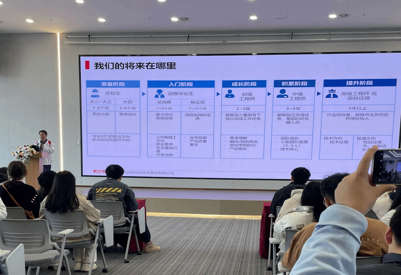 在座谈会的互动环节中,孙总解答了学生们在计算机专业知识上的困惑,并展示以该企业为职业目标的发展规划,鼓励同学们要积极做好对未来的职业规划和明确未来的发展方向。