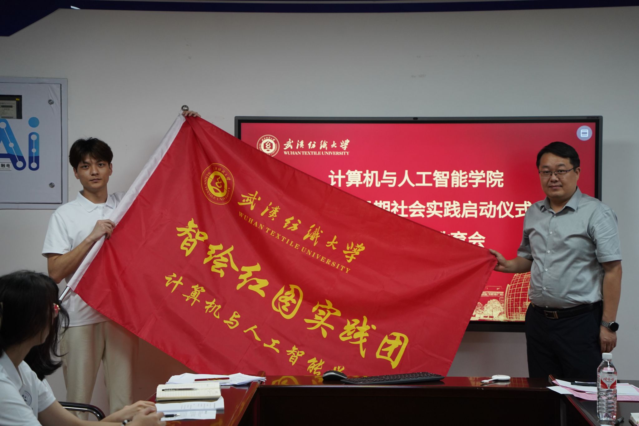 院党委书记晏伟从赓续红色基因的角度出发,谈到了社会实践对于培养学生的社会责任感和历史使命感的重要作用。他鼓励学生们通过实践活动去观察、体验、思考社会,从红色基地里感悟初心,发现更多积极元素,从而做好职业生涯规划,积极作为,将个人发展与国家和社会的需求相结合。副院长彭涛指出,实践团成员要有家国情怀,利用所学知识去发现、去了解、去帮助红色基地的数字化建设,发挥专业特长,顺应国家产业需求,并期待学生们能够在实践中展现出学院的学术实力和创新精神。社会实践指导老师易凡对学院社会实践的整体情况进行介绍,并且详细介绍了此次学院“智绘红图”实践团的前期筹备情况。实践团学生负责人陈昱蓉作表态发言,表示将以最积极的心态、最饱满的热情圆满完成此次实践活动。