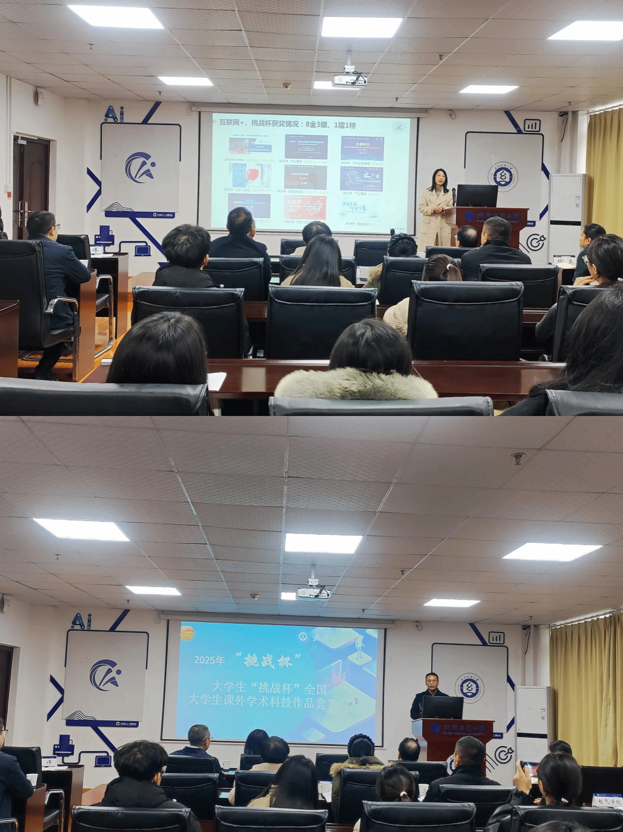 随后,华中科技大学朱盈盈副教授作题为《大学生创新创业大赛经验分享:从解读到实战》的报告。从参赛解读、参赛选题和参赛材料三大部分进行了全面的分享。在赛事解读方面,详细阐述了高教主赛道、青年红色筑梦之旅赛道和产业命题赛道三大赛道的区别与联系;从教育维度、创新维度、团队维度等讲解了评审规则;并从网评、路演和场地三方面讲解了参赛形式。学校科创杯竞赛专家李东亚教授作挑战杯竞赛辅导报告,通过实际案例,向在场师生分享了“挑战杯”全国大学生课外学术科技作品竞赛的有益经验与注意事项。