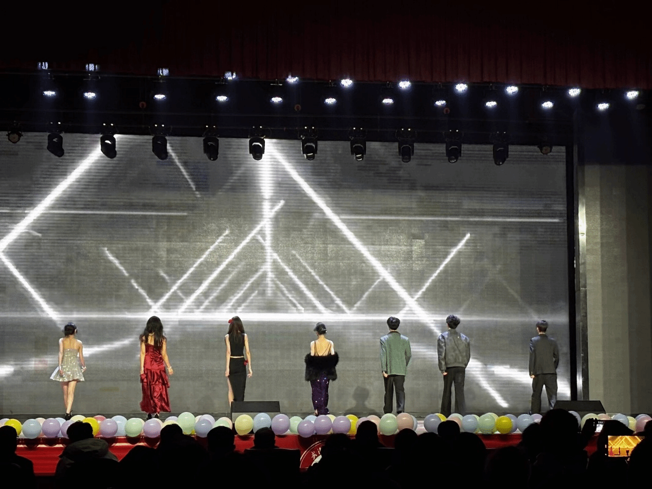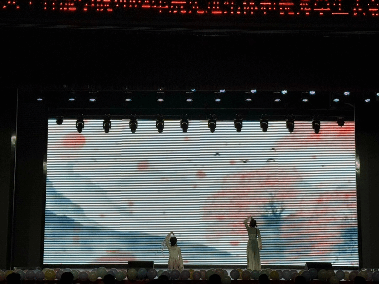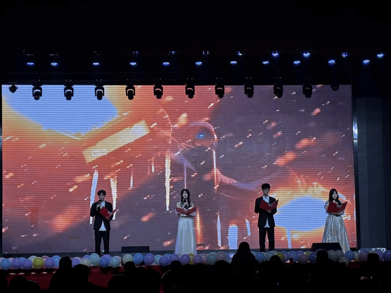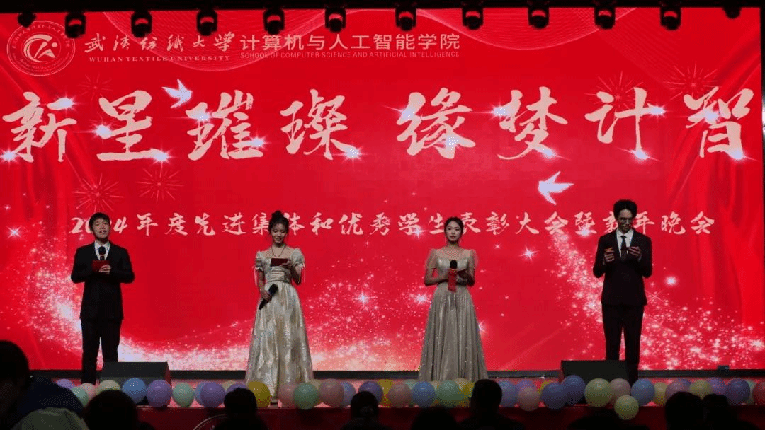 表彰大会后,迎新晚会在四位学生主持人史家豪、王奕涵、胡鼎文、许雨柔的精彩串场下正式开始。晚会以“新星璀璨·缘梦计智”为主题,分为“1024之缘·织初心”“1024之梦·绘未来”“1024之计·启星辰”“1024之智·共璀璨”四个篇章,共呈现了十余个形式多样、内容丰富的节目。