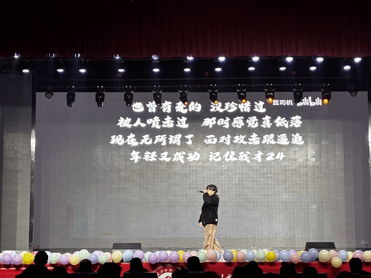 师生乐队带来的《西湖》+《无地自容》,用激情四溢的演奏点燃了现场气氛;舞蹈《APT》《红马》+《探窗》《BoomBoomBase》《whiplash》+《Antifragile》《Meow》展现了同学们的青春活力与昂扬斗志;朗诵节目《雪Distance》,声情并茂地传达了深厚的情感;歌舞《我的未来式》则以欢快的节奏和灵动的舞姿展示了计智学子对未来的美好憧憬。