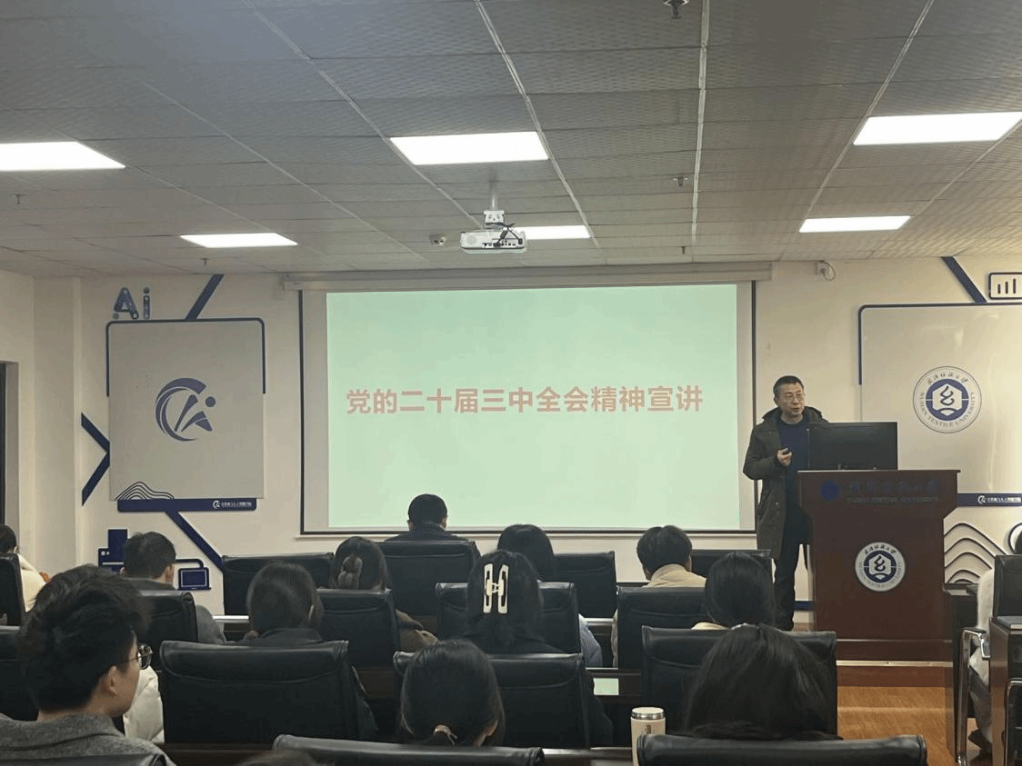 为深入学习贯彻党的二十届三中全会精神,引领广大青年学生凝心聚力、奋发进取,在中国式现代化建设中挺膺担当,推动党的二十届三中全会精神入脑入心、见行见效。12月31日下午,ok138cn太阳集团529党委书记晏伟在崇真楼南楼A4030为本科生党支部讲授专题党课,宣讲党的二十届三中全会精神,学院党委副书记向涛;本科生党支部书记廖龙、张栋、谢瑞清、易凡;所有本科生党员、入党积极分子参会。