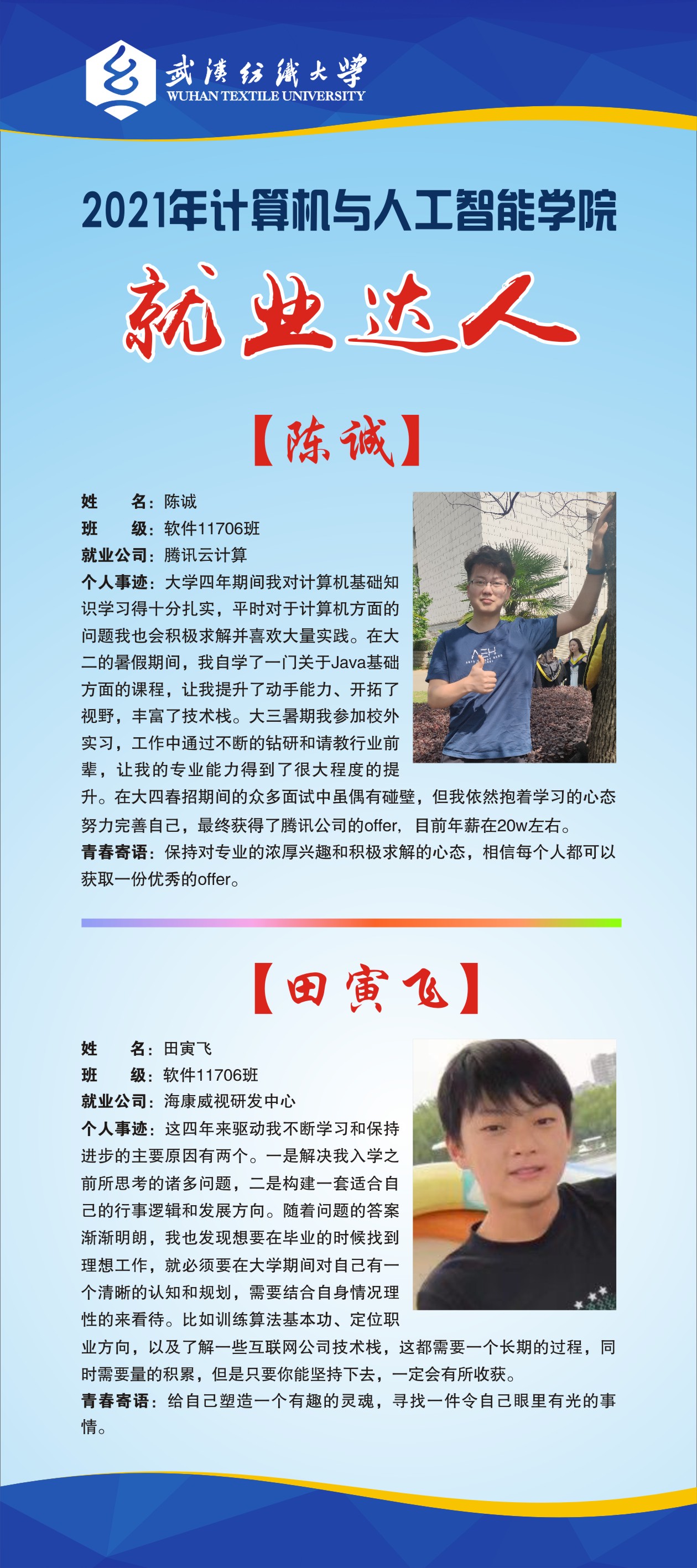 专业介绍:本专业顺应国家对人工智能人才的需求,面向人工智能领域的应用开发,算法设计等人才紧缺领域,培养掌握人工智能领域的理论知识和工程技术,富有家国情怀和奋斗精神,具有较强的创新和实践能力,能解决人工智能及相关领域复杂工程问题能力的高素质复合型创新人才。目前数据科学与大数据技术与人工智能这两个专业都隶属于计人工智能系。人工智能系共有专业教师8名,其中教授1名,副教授3人,具有博士学位7人,“阳光拔尖人才”1名,近年来,本专业教师获湖北省科技进步三等奖1项、多名教师获学校教学质量优秀奖、学校“科研标兵”、ok138cn太阳集团科技进步二等奖等荣誉称号。近年来,本专业教师承担了国家自然科学基金项目、国家档案局科技项目、湖北省自然科学基金项目、湖北省教育厅重点项目和中青年人才项目,以及湖北省统计局项目等15项,出版教材2部,发表A类以上高水平论文10余篇,申请国家专利5项。主持横向项目十余项,项目经费进账600余万。拥有大数据服务中心、人工智能创新实验室、人形机器人实验室、工业机器人实验室、计算机机房、机器视觉实验室、嵌入式系统创新实验室等。同时,在人工智能等专业实践与应用场景方面,在服装产业数字化、智能化领域积极布局,拥有湖北省服装信息化工程技术研究中心、云计算研究所、机器学习研究所及大数据工程中心,还与科大讯飞、万方数据、奥浦信息等企业联合共建了人工智能实验室、纺织大数据研发中心、信息安全实验室等研发基地。、主要开设课程:计算机相关课程(程序设计语言,数据结构,数字逻辑,编译原理,操作系统,计算机网络原理,计算机组成原理);人工智能相关课程(算法分析与设计,数字图像处理,最优化方法,控制理论与方法,神经网络,机器学习,深度学习与应用,自然语言处理)。