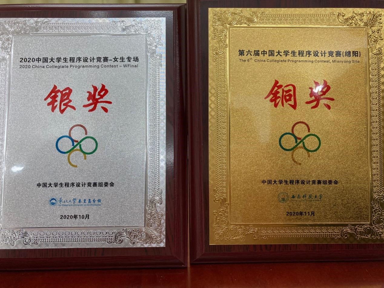 11. 曾路等获中国大学生程序设计竞赛秦皇岛站优秀奖、中国大学生程序设计竞赛绵阳站铜奖(2020年);
