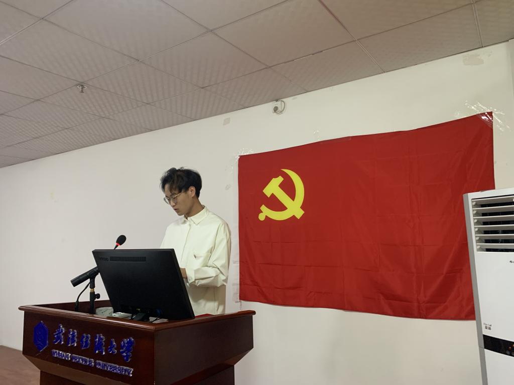 在观看活动结束后,支部副书记曹文丽同志通报了在学校2020-2021年度“两优一先”评选表彰活动中,研究生支部获评“先进基层党组织”荣誉,支部党员蔡升豪同志获优秀共产党员称号。蔡升豪同志作为代表在会上交流了学习习近平总书记“七一”重要讲话精神的心得体会。