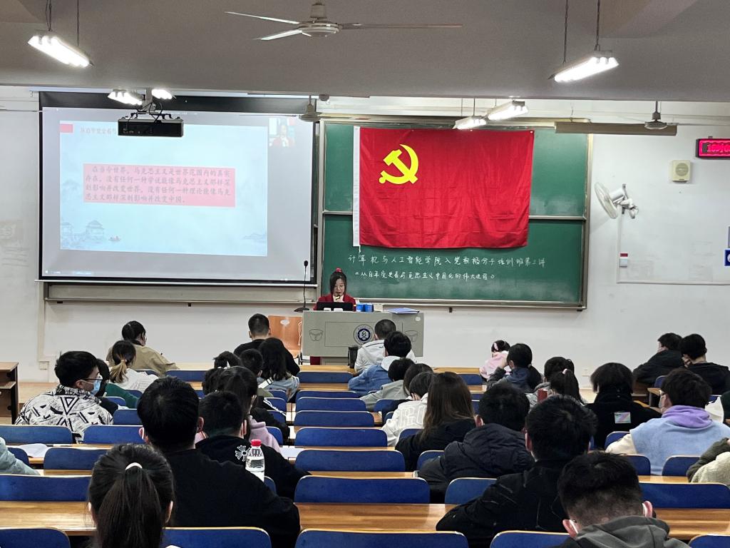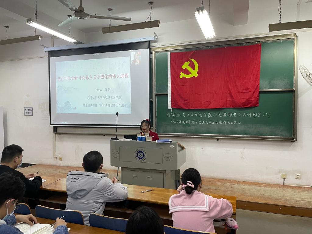 主讲人陈春兰博士讲授了题为《从百年党史看马克思主义中国化的伟大讲述历程》为主题的党课,向全体入党积极分子讲述马克思主义中国化的历史逻辑、理论逻辑和实践逻辑。陈博士通过分析近代中国问道寻路的具体举措,讲述了太平天国农民运动、洋务运动、戊戌变法和辛亥革命等具有代表性的事例,从而得出中国选择马克思主义不是偶然的,而是历史条件和中国国情下的必然选择的重要结论。马克思主义是中国先进知识分子经过反复比较多次论战,做出的慎重选择,它是具有科学性和革命性相统一的科学理论,这是中国先进知识分子接受马克思主义的根本原因。