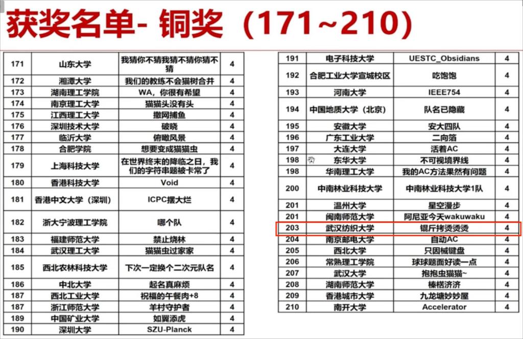 11月19日至20日,由学院1024工作室ACM俱乐部指导老师张自力指导的一支参赛队伍参加了第47届ICPC国际大学生程序设计竞赛(合肥站),最终夺得铜牌。队伍的三名成员分别是我院计科专业2019级种佳琪、2020级杨硕和杨沛霖。(队伍名:锟斤拷烫烫烫)