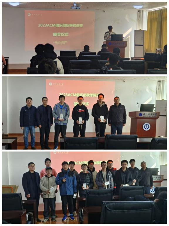 在经过激烈的比赛角逐后,共有27名同学脱颖而出。并于14日下午1点,在实训楼(南楼)A4030 举行了颁奖仪式,学院副院长魏雄、党委副书记向涛、ACM俱乐部指导老师张自力、1024工作室负责老师谢瑞清出席了本次活动并给获奖同学颁奖。