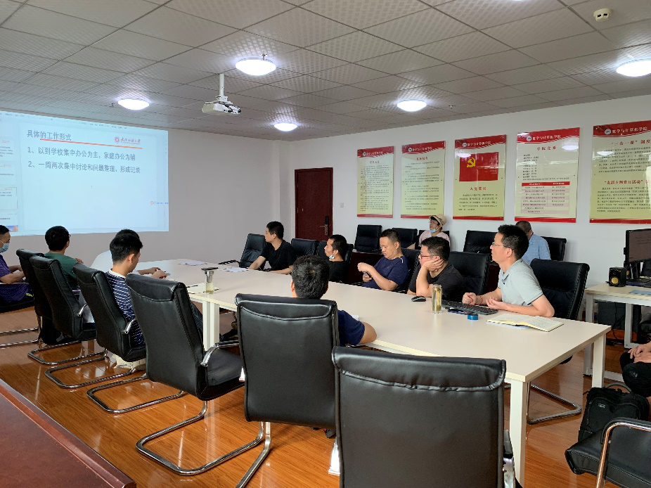 任务分解完成后,老师们对相关工作的细节进行了讨论,聂刚老师对具体的任务进行了明确,曾西洋老师对课程达成情况的计算进行了培训和解释,孔维广,邓在辉老师就计算机网络原理课程达成情况计算进行了说明。