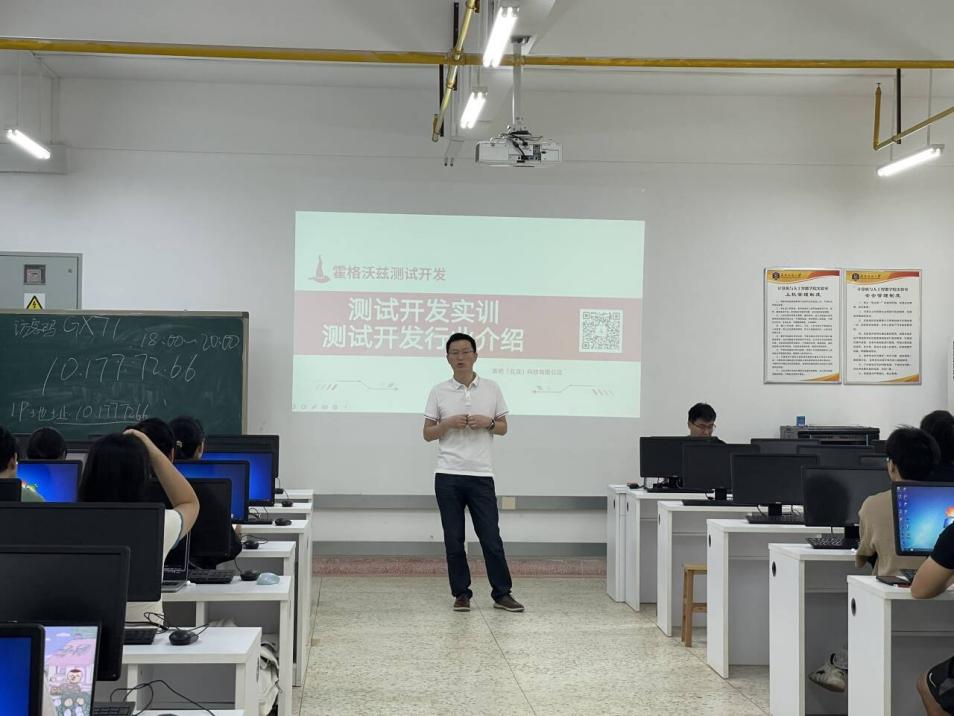 学链科技公司代表在仪式上分享了行业的最新动态和企业对软件工程人才的需求特点。该公司喻总经理表示,企业将为学生们提供良好的专业实践指导,帮助学生更好地了解行业需求,提升专业技能。测吧公司王总经理也对此次合作表示高度重视。他介绍了企业在软件测试、供应链品质管控等方面的业务,并表示将结合自身业务优势,为学生们提供丰富的实践机会,让学生深入了解软件质量保障的重要性和实际操作方法。