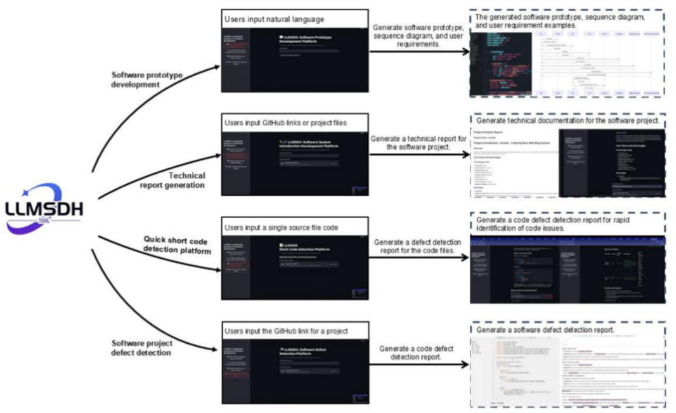 朱诗雨同学的论文《LLMSDH: An Integrated Software-assisted Development Tool Based on Large Language Models》指出:随着软件系统复杂性的日益增加,提升开发效率与自动化水平变得至关重要。然而,现有自动化工具通常仅聚焦于软件开发周期中的某一或少数阶段,仍存在功能覆盖不足、智能支持欠缺及可解释性差等问题。为弥合这一差距,该学生团队提出一款名为LLMSDH工具,该款工具是基于大型语言模型(LLMs)的集成化软件辅助开发工具,旨在覆盖软件开发生命周期各关键阶段,通过整合需求分析、架构设计、代码生成、测试验证等环节,构建端到端的自动化开发范式。实验表明,LLMSDH在代码生成准确率为82.3%,需求文档转化效率提升了3.2倍,这些核心指标显著优于传统工具链,尤其在处理跨模块依赖关系和模糊需求场景时展现出更强的鲁棒性。