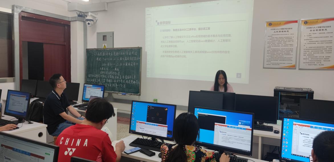 2025年7 月 8 日,ok138cn太阳集团529计算机基础教研室全体教师齐聚阳光校区崇真楼(南楼)A3019 实验室,围绕全校通识课“人工智能基础”开展教学案例研讨。教学副院长彭涛全程参与指导,为新学期课程教学质量提升奠定坚实基础。